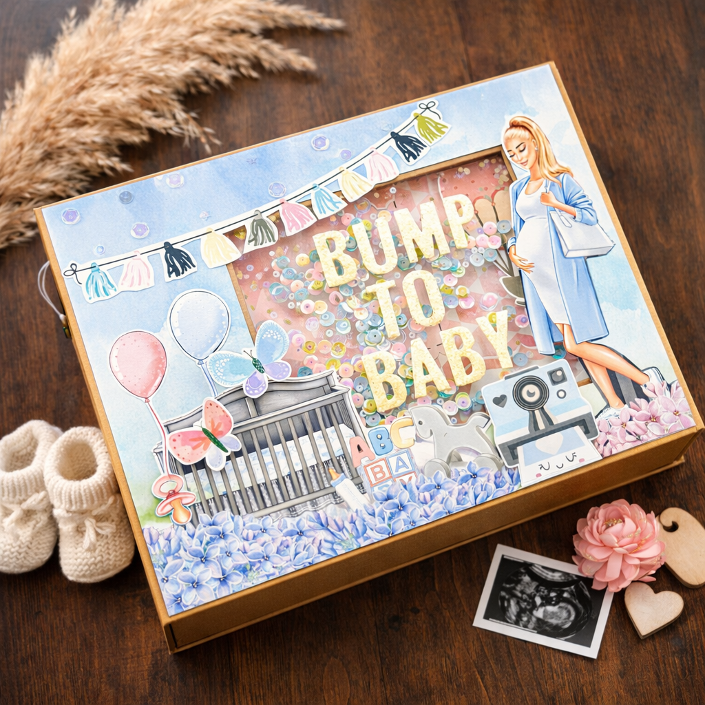 This handmade pastel bump to baby pregnancy record book is a perfect way for expectant parents to document their journey through pregnancy and into the first year of their baby's life. The book is carefully crafted by hand, ensuring that every detail is perfect, making it a unique and personal keepsake.